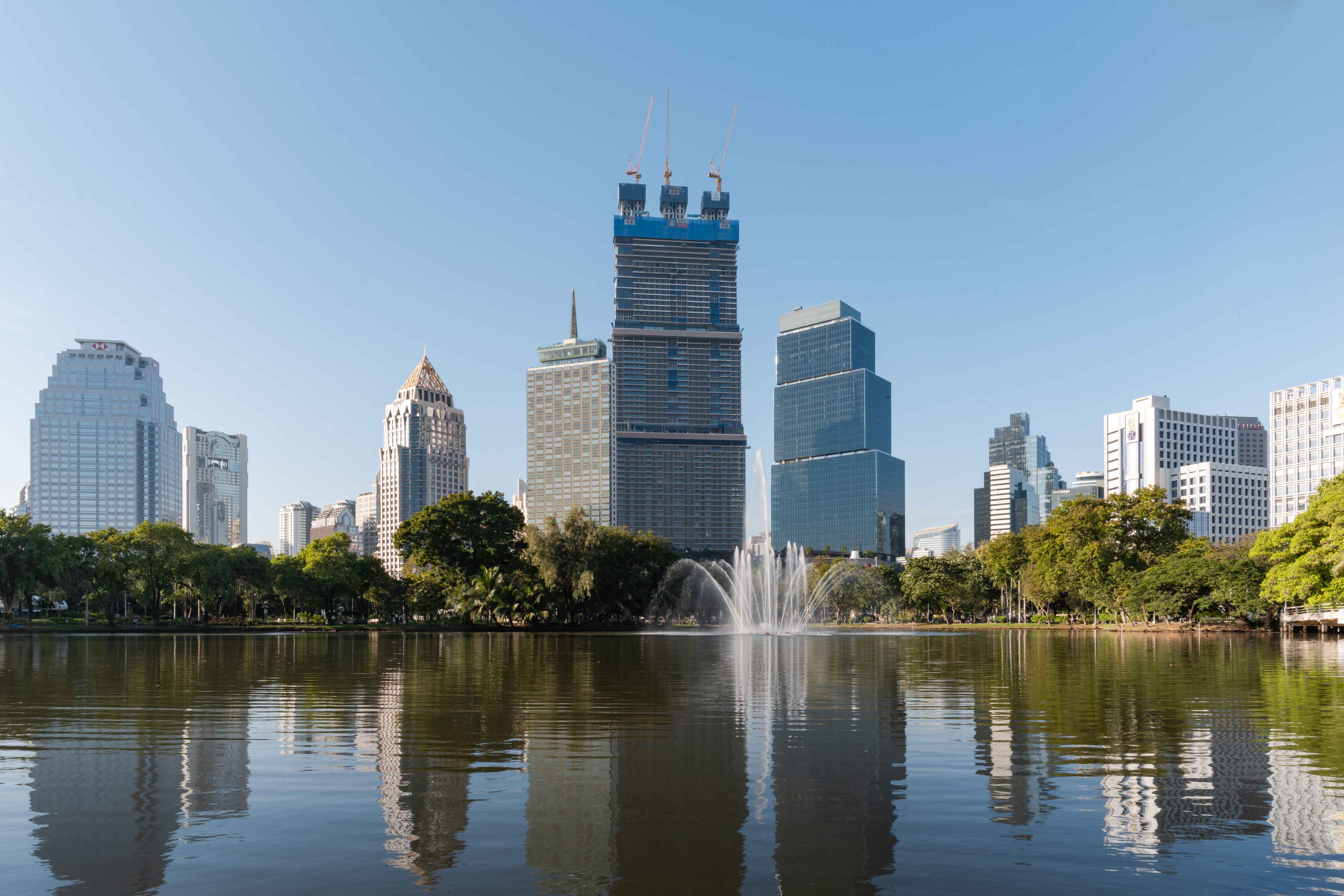 Located on 444,000 square meters of prime real estate on the corner of Silom and Rama IV Road, opposite the green expanse of Lumpini Park in the heart of Bangkok, the Dusit Thani Central Park is a new landmark for the future. The modern form of this new mega complex is inspired by the dynamism of Bangkok while paying homage to traditional Thai heritage.