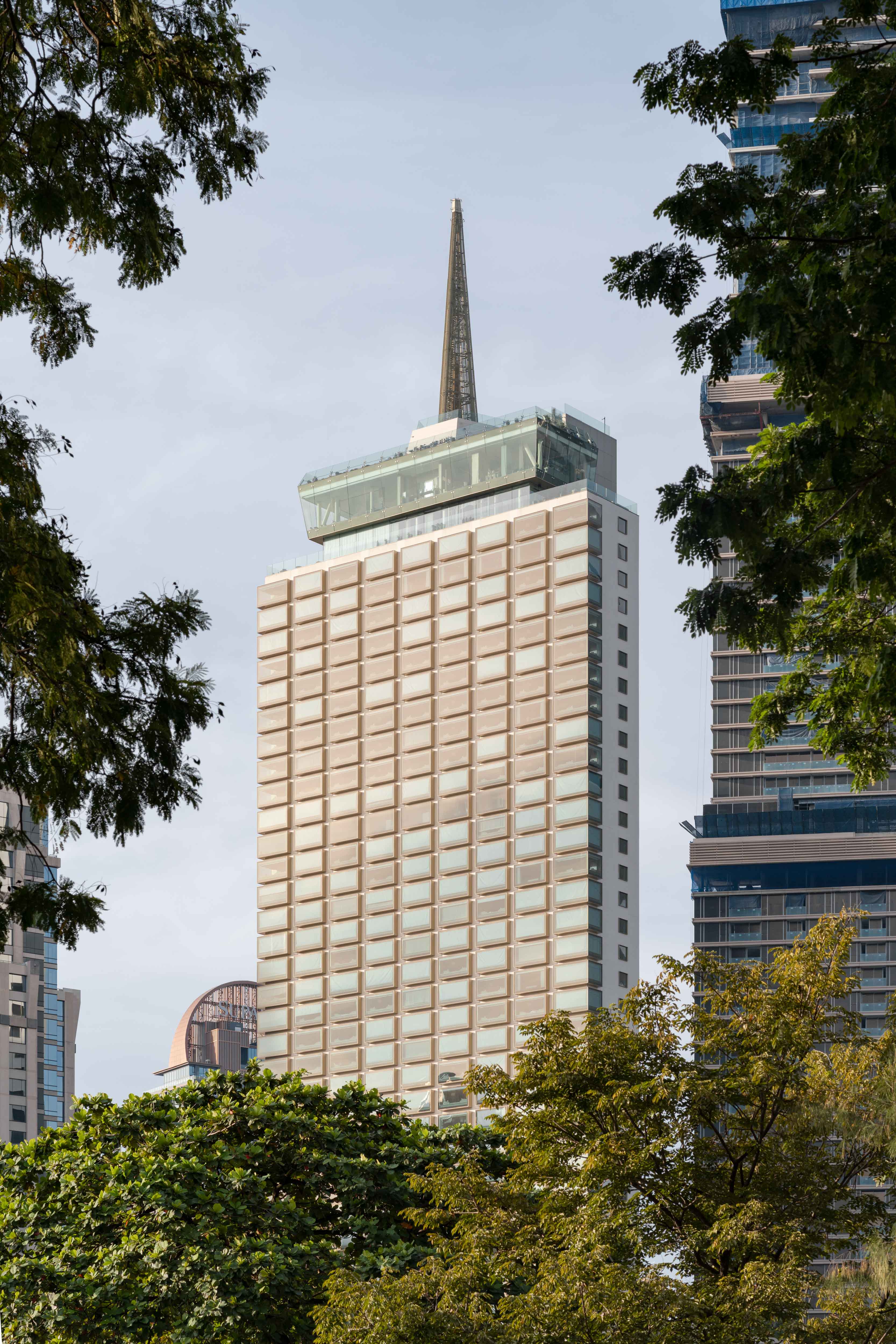 The reimagined Dusit Thani Bangkok hotel will retain its iconic golden spire, inspired by the temple spires of Wat Arun, or the Temple of Dawn. The original Dusit Thani spire was, and will continue to be, a symbol of modern hospitality and exquisite Thai heritage. With 39 floors and 259 rooms, the new hotel has fewer rooms but stands taller than the original and is oriented to offer all guest rooms a vista of Lumpini Park. The lobby, restaurants and ballroom are located on the lower floors, while the rooftop bar and golden spire top the hotel.