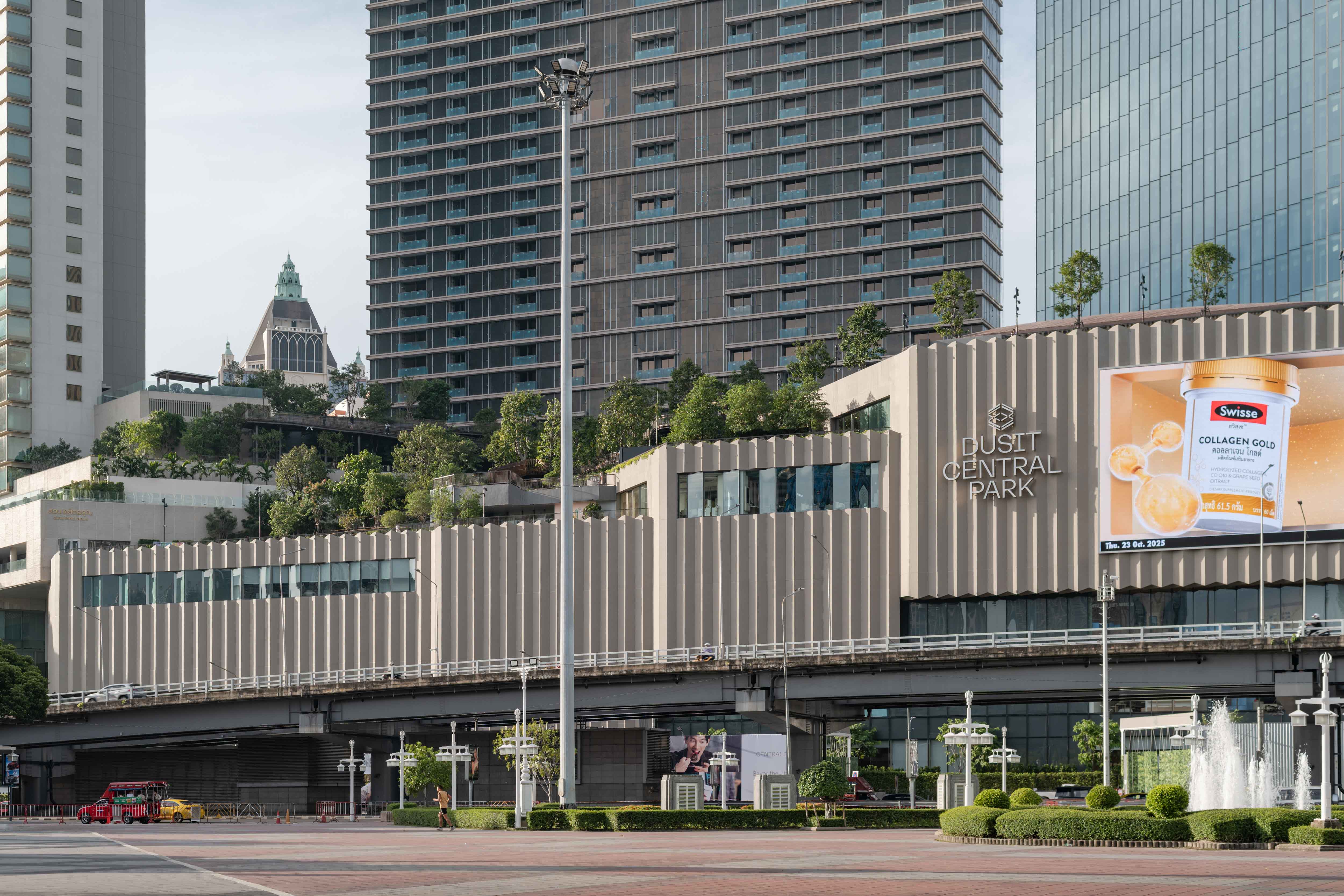 A low-rise shopping complex, Central Park, boasts high-end retail and offers a revolutionary shopping experience. This is connected to Central Park Offices and to the MRT. Green terraces ascend 4-stories to the 11,200 square meter roof top garden on the 7th floor. The visual effect is of a small, green hill among high-rise buildings. This is the heart of Dusit Thani Central Park.
