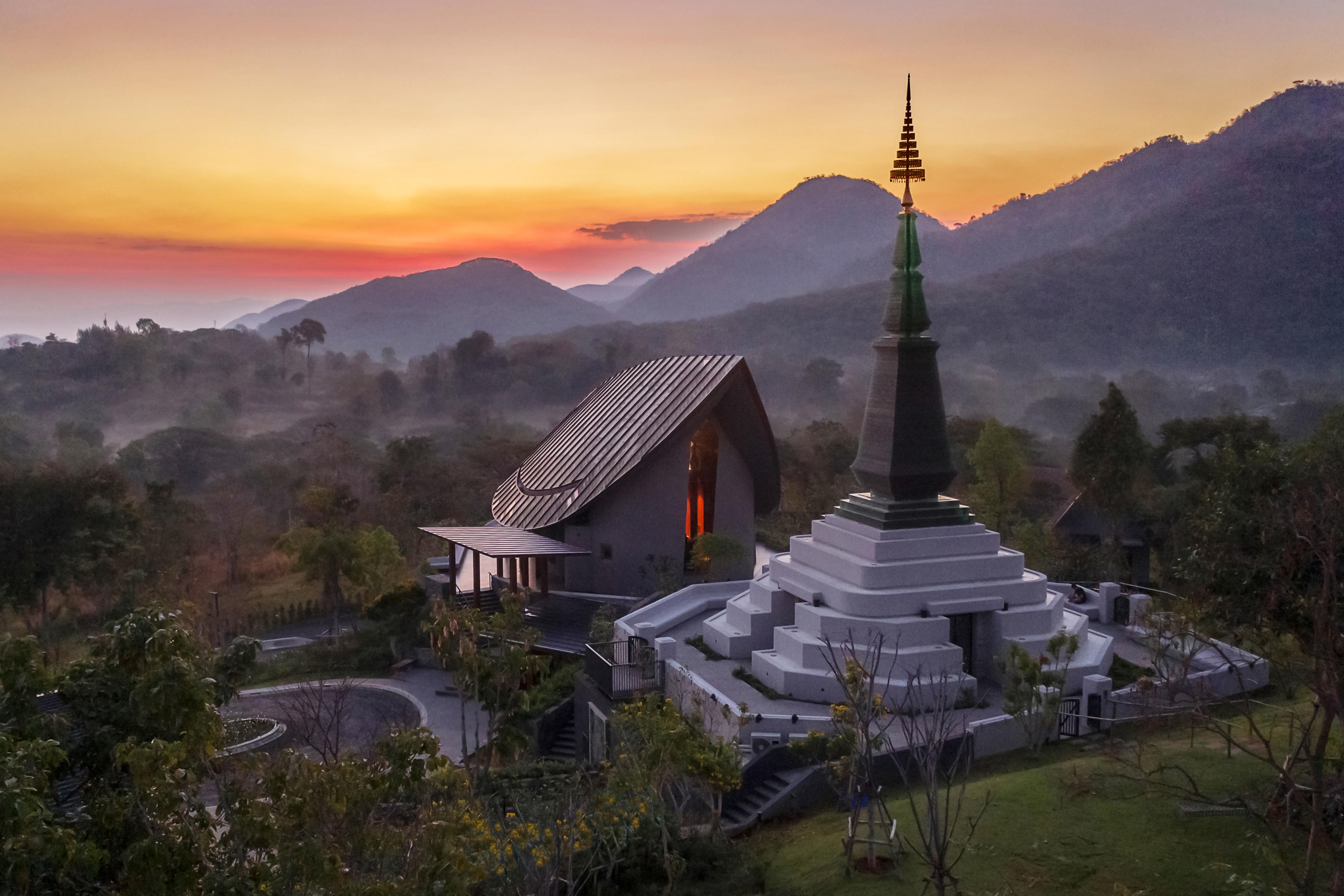 “Sasipawan” is a meditation center located in Khao Yai, along Thanarat Road. It was established as a place of Buddhist study and meditation for monks and Dharma Teachers. The complex of buildings is designed to be unique, elegant, and distinct, with a natural form that merges art and architecture imbued with the Thai spirit. The contemporary architectural design focuses on minimalism and the philosophy of sufficiency which promotes the teachings of Buddhism for the good of society.