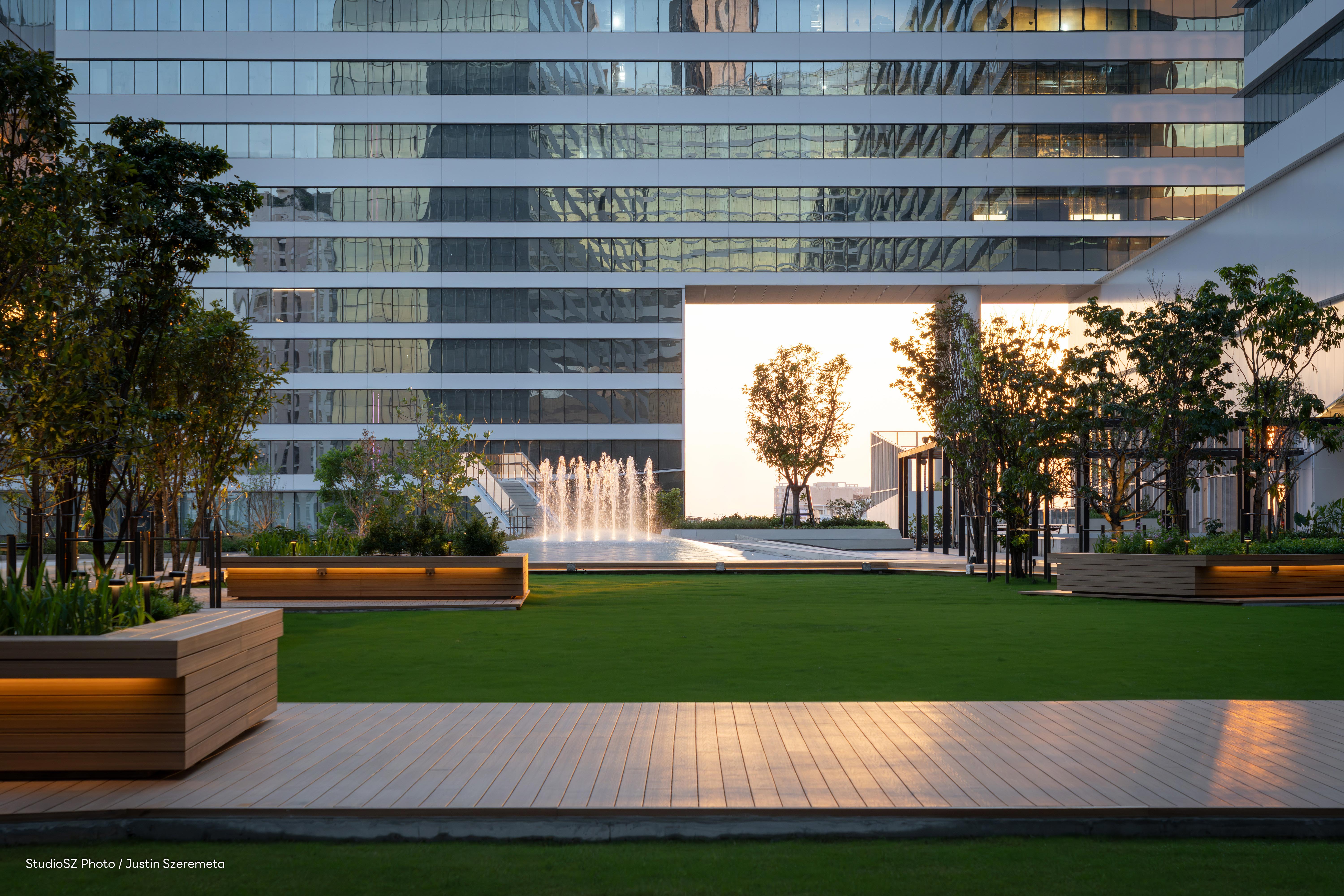This high-rise mixed-use complex, designed for flexible function with the vision to support the Creator Economy,is set to become Asia’s largest hub of content creators. Spanning over 43,200 sq.m. (27 rai) on Sukhumvit Road, the complex includes hybrid retail, creative offices, studio space, two hotels, a cultural arena. These collaborative and experiment spaces, which can also be used for rest and relaxation, offer a comprehensive ecosystem for creators in gaming, music, film and digital content. Shared facilities allows users to intermingle, presenting the opportunity to establish new connections. Designed to be at one with its environment, large green spaces on the rooftop and canal-side are open to the public. Decontamination of the currently polluted canal provides a recreational area for the local community, reiterating the importance of maintaining our waterways and natural environment.